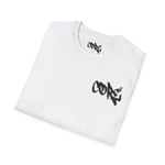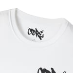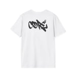 A lightweight, ring-spun cotton tee with bold, hand-drawn graffiti lettering across the chest and upper back. The clean white canvas puts the dark, street-style script front-and-center, making it feel like something pulled from a skate park or late-night mural run. It sits with a relaxed classic fit and a soft crew neckline, so it layers easily under a jacket or stands alone as a statement. Wear it when you want your outfit to speak with uncomplicated attitude — casual, confident, and a little rebellious.