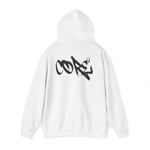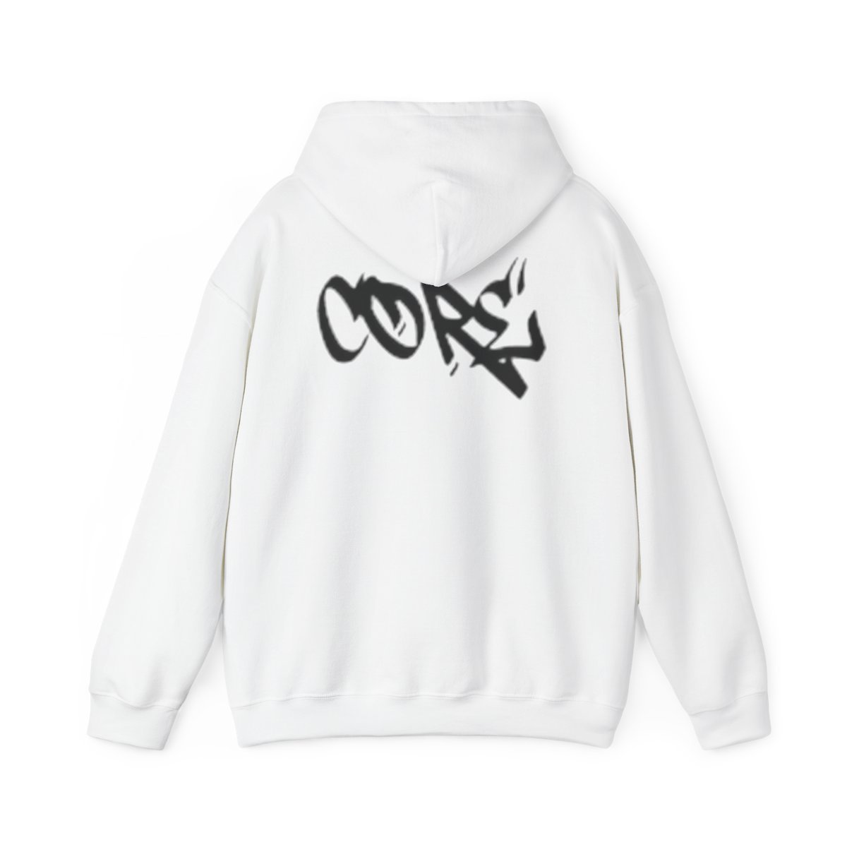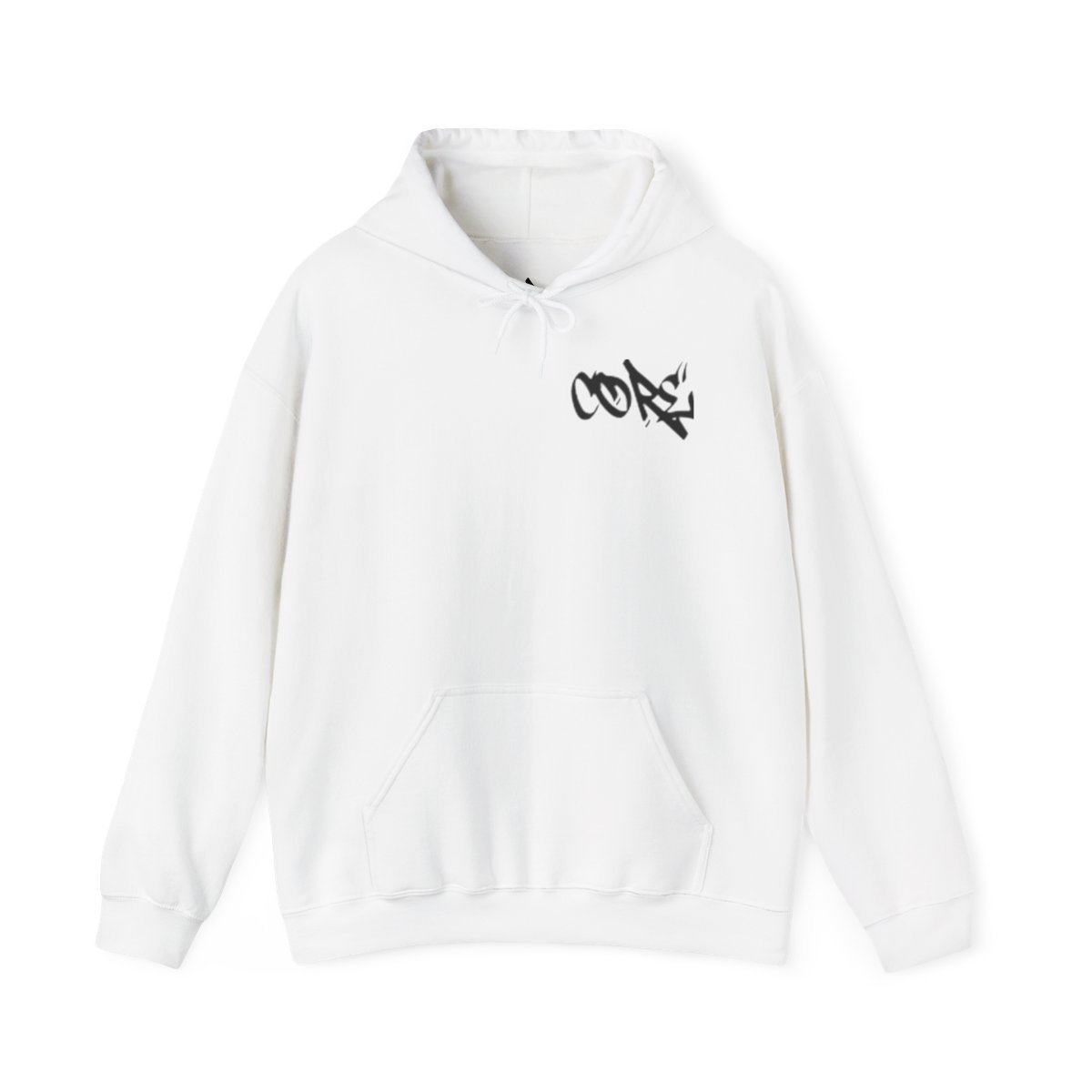 This cozy hooded sweatshirt brings streetwise attitude to everyday warmth. Built from a soft 50/50 cotton-poly blend, it wears in without losing shape and holds bold prints with sharp contrast. The graffiti-style “CORE” mark sits small over the heart and expands across the upper back, like a signature tag that follows you from coffee runs to late-night skate sessions. A double-lined hood and color-matched drawcord give structure, while the roomy kangaroo pocket keeps hands warm and phones tucked away. Subtle tear-away labeling and clean tubular construction keep the fit smooth against the skin. Throw it on over a tee or layer it under a coat — it’s the kind of hoodie that feels lived-in from the first wear and carries a confident, urban edge.